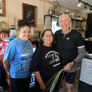 Meters beyond this portal was the Sunset Café where Niibin (Summer) was multi-tasking. She sat in the mid-day sun rolling joints, serving customers and watching butterflies dance. We rolled into this charming corner of Chatam-Kent, parking our bikes in the shadows of a sign reading,’ “Cannabis Heals”. Niibin’s mother brought us coffee, cookies, and sweet grass (symbolizing healing, peace, and spirituality) in a gesture which wafted in kindness.